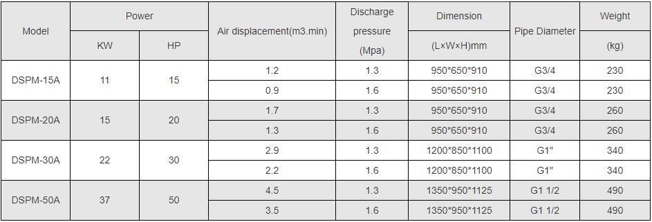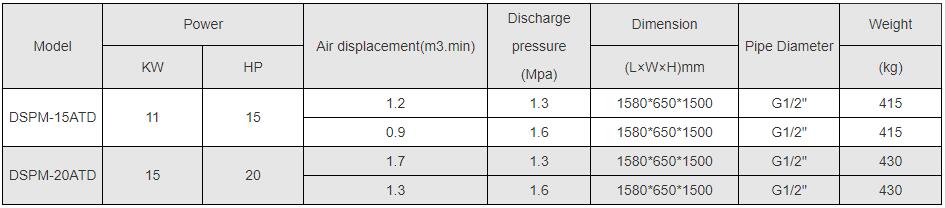 Technical parameters of Laser cutting combined PM motor VSD screw air compressor
